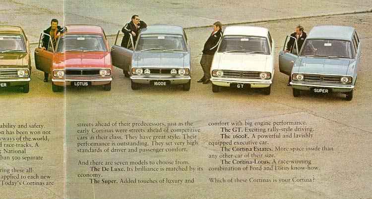 This 8 inch x 11.5 inch brochure was published in 1969, and is very similar to the Magnificent Seven brochure, published during the same year. Same pictures, same text, just a different cover. It is a product of the Car Advertising and Sales Promotion Department, Ford Motor Company Ltd., Warley, Essex, England. It carries a reference number of FA2/915891/699/DOM.