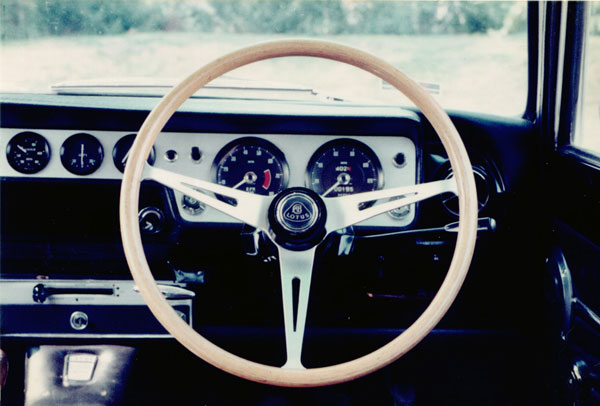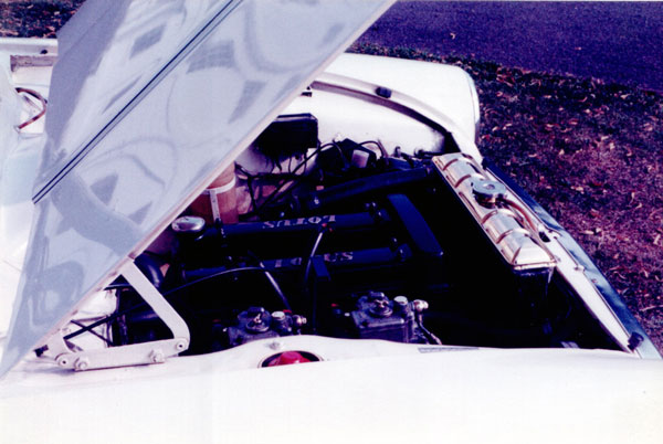 "The car was assembled at the Lotus factory at Cheshunt England in February of 1966. It was purchased by a large banking firm and used as a company car, first registered on 1 May 1966 and given the rego KGW 531D. In 1969 it was sold on to a Sgt in the British Army. In 1971 the Sgt sold it for the princely sum of 400 pounds to a very nice gent in Hounslow, Middlesex, England. The photos below date from this ownership, and show the extra green pin-stripes on the side and on the bonnet, that I am told came from the Lotus factory. This car is the only one I have seen with this extra striping."