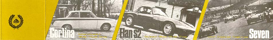 This is a little 2 inch high, 5 inches long (folded) brochure, that asks the reader inquire for further details, by filling out the back form, and sending to: Lotus Cars Ltd. Delamare Road- Cheshunt- Herts- Waltham Cross 26181