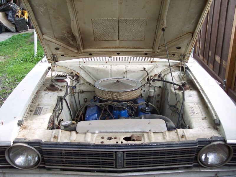 Future project car, '69 Estate, local car, 40,000 orig miles, mostly original paint. Vandalized by pellet gun, 3 windows shot out (all replaced now). Owned since '03. Hit heavy in rt 1/4, already had factory replacement 1/4 on it, fixed by Mike. 302 2 bbl. V8, T 5, narrowed 8", 3:0 gears. Note 15" Mustang GT wheels. Not driveable yet but it runs. |